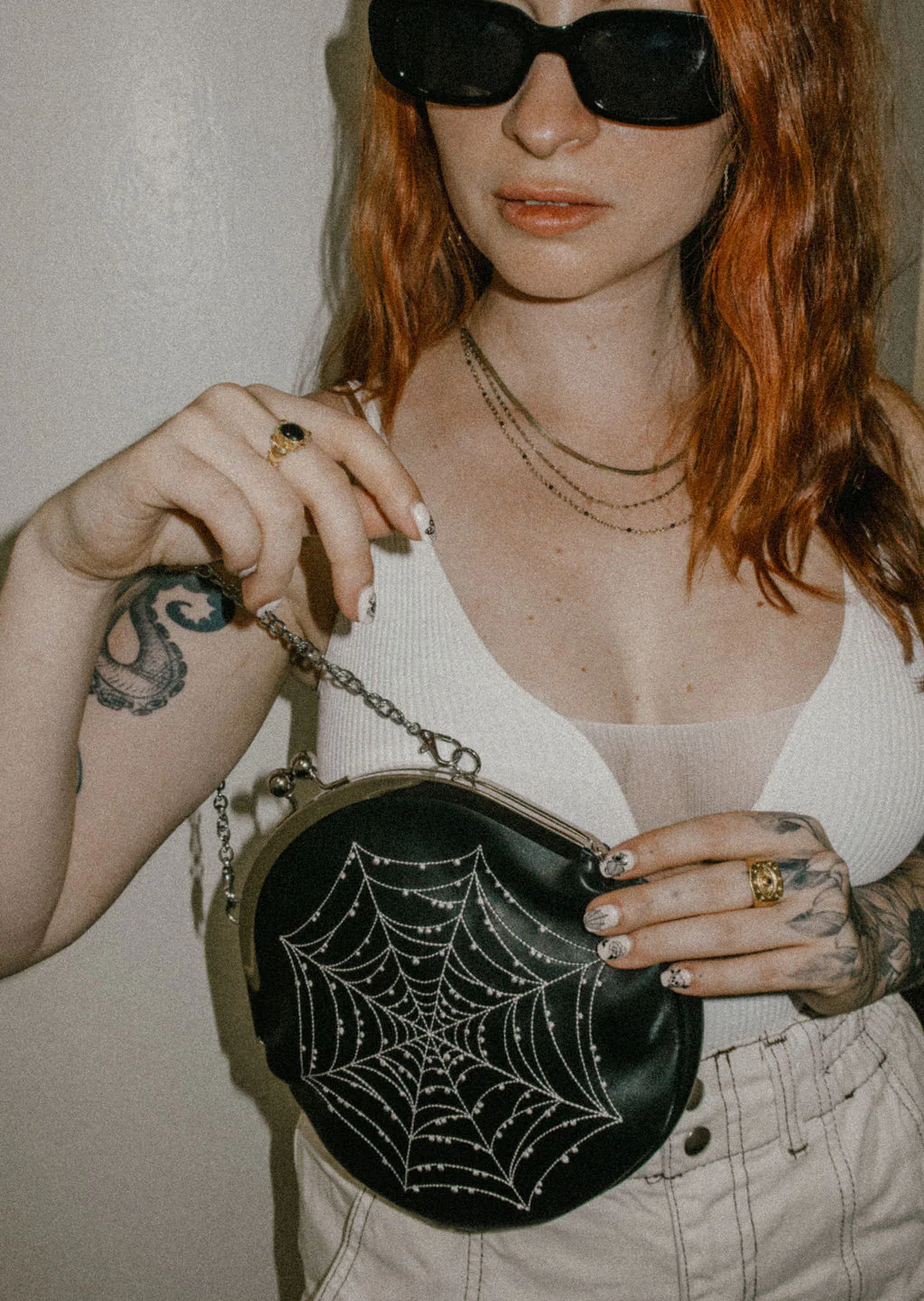 Be the first to review “Spiderweb Convertible Clasp Handbag in Black”